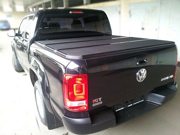 Жесткая трехсекционная крышка для Volkswagen Amarok изготовлена из алюминия. Не портится от воздействия влаги и мороза. Производитель добавил усиленные ребра и углы, чтобы повысить жесткость конструкции. Крышку удобно устанавливать и демонтировать. Она не царапает авто и прекрасно смотрится со стороны.